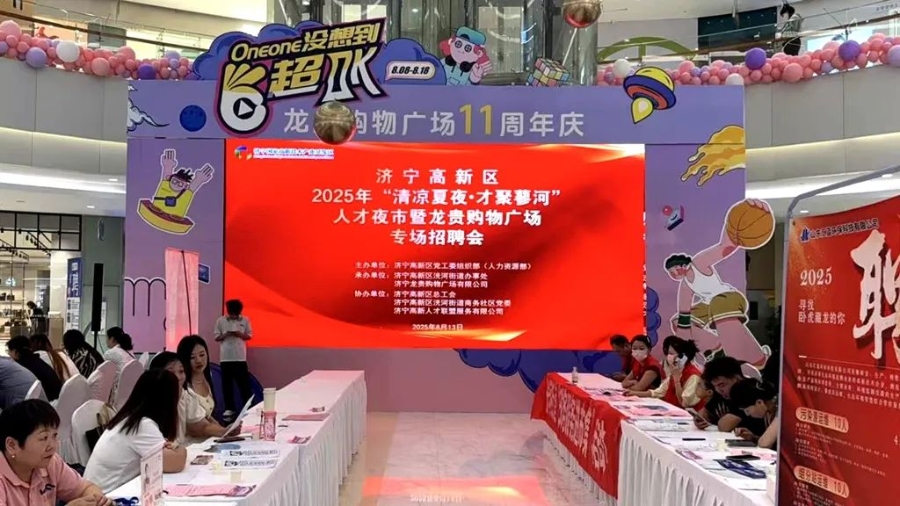 8月13日,济宁高新区总工会在龙贵购物广场开展济宁高新区“工会帮就业 乐业在齐鲁”人才夜市专场招聘会,以创新服务模式打通人才供需“最后一公里”。