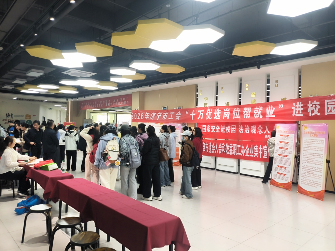 为深入贯彻落实稳就业、保就业工作部署,切实发挥工会组织在促进高校毕业生高质量就业中的桥梁纽带作用,助力广大青年学子顺利实现就业,3月27日,济宁市总工会联合济宁市人力资源和社会保障局、济宁学院,精心举办“十万优选岗位帮就业”进校园活动,把优质岗位、就业服务、政策扶持直接送到学子身边。